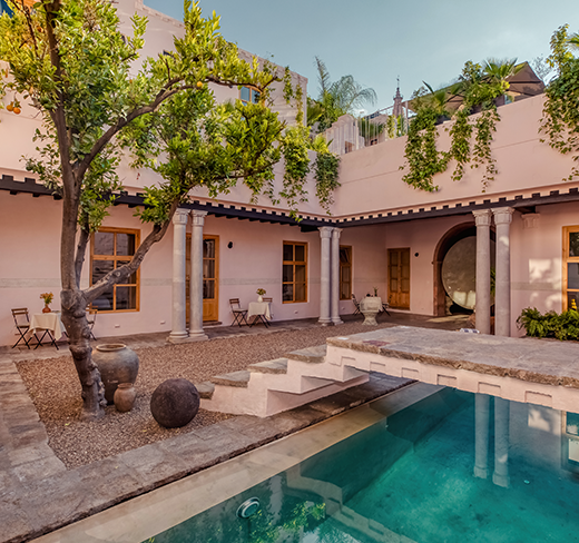 La Valise San Miguel offers the warm, intimate ambiance of a private home, with six beautifully furnished suites available. Each room includes a fireplace and a spa-inspired bathroom. In the middle of the property is a peaceful courtyard, complete with a plunge pool, a jacuzzi, and a lemon tree.